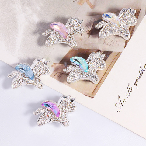 Dupla face Alloy Rhinestone unicórnio Straight-hole Loose Beads para DIY Phone Straps Chaveiros e Bag Chain Acessórios