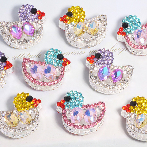 3D Liga Bonito Pequeno Pato Colorido Rhinestone Straight-Hole Beads DIY Mobile Phone Strap Keychain Bag Cadeia Acessórios