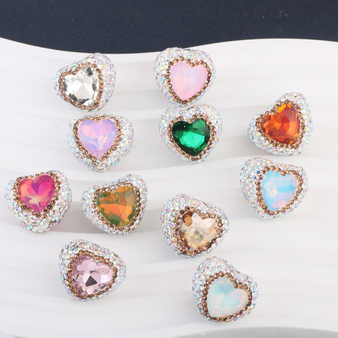Rhinestone Coração Western-style Broca de argila macia Bead com um buraco reto DIY Acessórios para encantos do telefone Chaveiros
