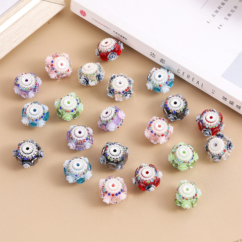 Nepal Flower Flat Bead Rhinestone Bola com Straight-through Buraco DIY Telefone Cadeia Chaveiro e Acessórios Cadeia Bag