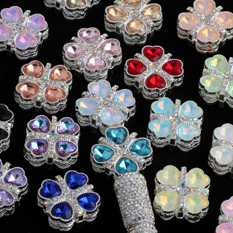 Liga Double-Layer Criativo Bowknot Coração Rhinestone Straight Hole Loose Beads para DIY Mobile Phone Keychain Jóias Acessórios